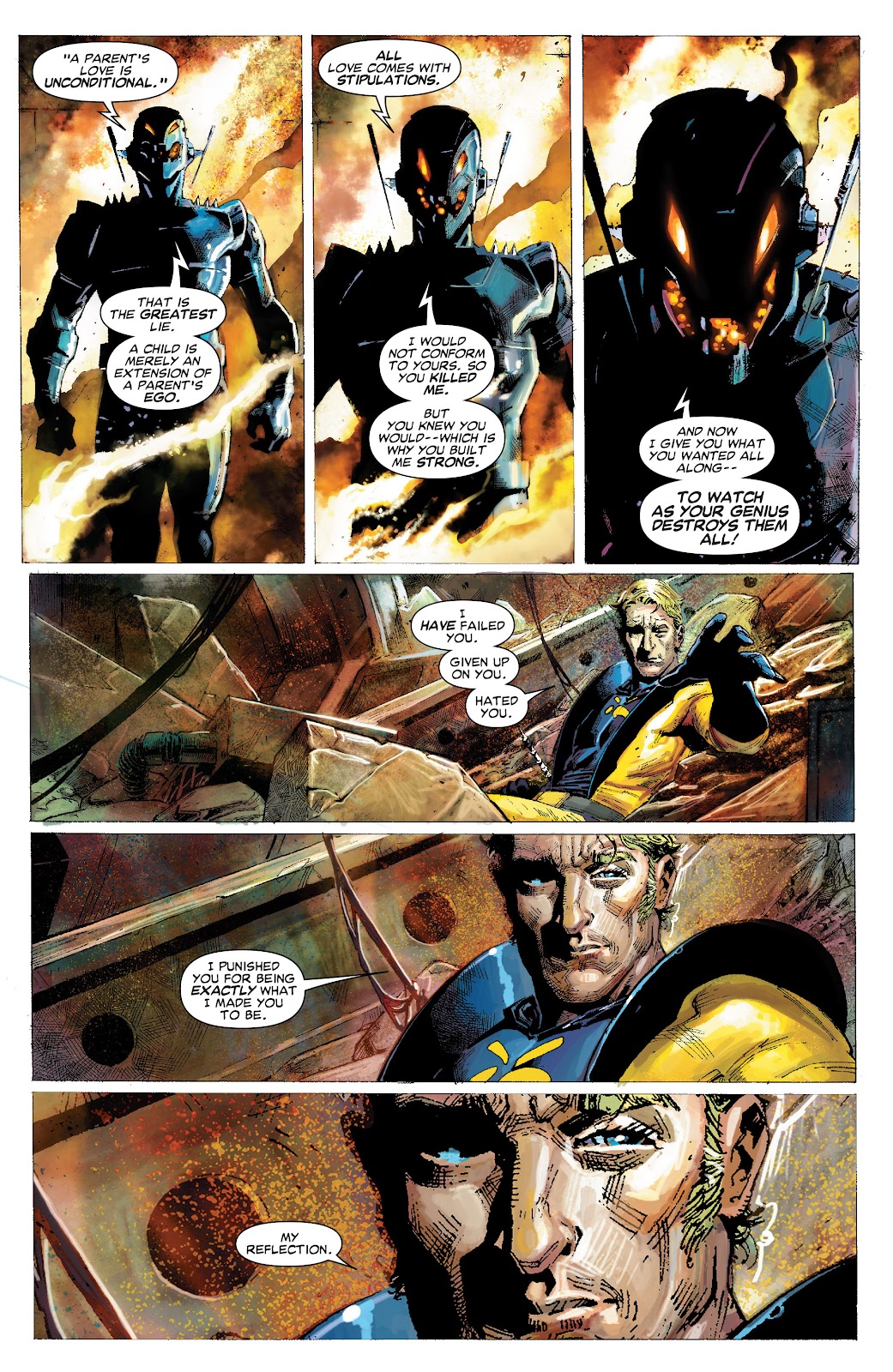 Ultron is one of the Avengers’ two primary villains, yet more intimately connected to them than Kang via having been created by Hank Pym and having in turn created the Vision. Kurt Busiek’s introduction points out further connections, and Rick Remender’s opening chapter, set in the past, kicks open a door only previously hinted at. What if beneath all the violence and posturing there is a genuinely reciprocal father/son love between Pym and Ultron? It’s exploited by Pym to destroy Ultron in the past.