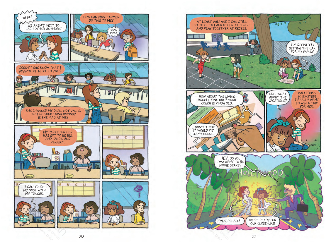 The way Marcela Cespedes draws Cassie’s expressions ensure readers will feel so sorry for her, while Hale equally ensures they’ll be able to see how manipulative classmate Stesha is in upsetting Cassie. As she navigates through her troubles Cespedes provides a fully detailed neighbourhood for Cassie, and makes her fantasies fly as she dreams about what she’s going to win.