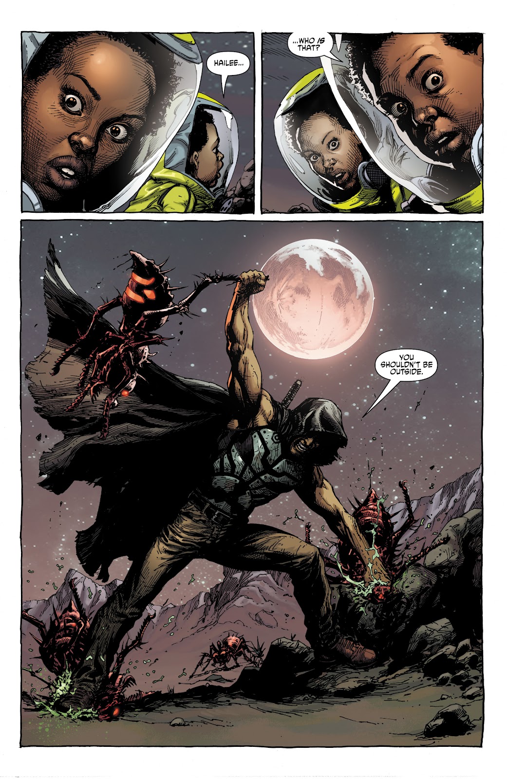 Existence is only pleasant for a privileged few, and the way Geoff Johns constructs society after the bombs have dropped means opportunities have to be taken when they present themselves, even if that means risking life. Given his name is the series title, it’s no real revelation that Geiger is the glowing man, and he stars in a tale that’s relatively simple once unpicked, but concealed by Johns via introducing the circumstances, then selectively employing flashbacks revealing a little at a time. This includes fragmented societies, none of them representing the best of humanity irrespective of what they claim to stand for.