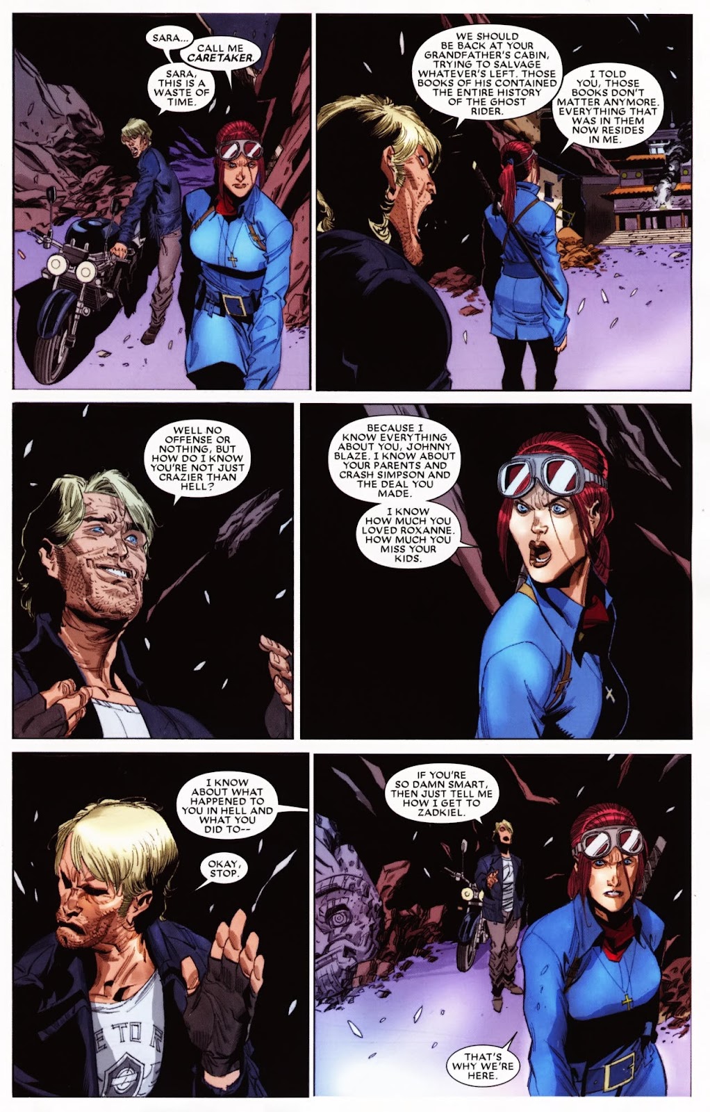 The core story is Jason Aaron’s broadening of the Ghost Rider mythology. For instance, why is it only the USA that has a spirit of vengeance? Turns out, it isn’t, yet the American Johnny Blaze version of Ghost Rider is the focus, aware angel Zadkiel is manipulative and deceitful. We later learn Danny Ketch, also a Ghost Rider, hasn’t picked up on this and genuinely believes he’s doing people a favour by sucking the supernatural essence from them, even if it leaves them dead.