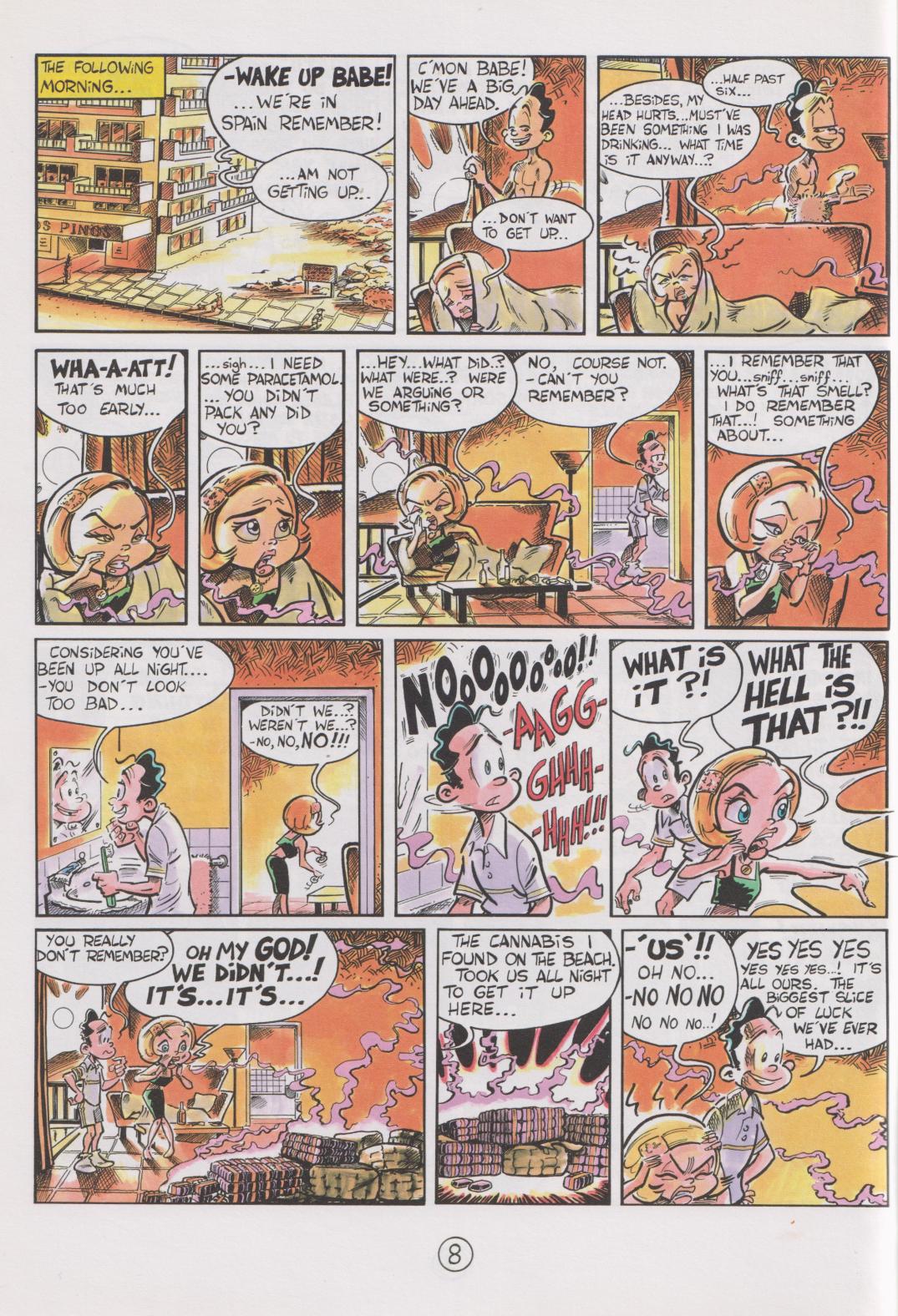 A couple we eventually come to know as Stan and Kaye are in Spain on holiday and fall out. Moping on the beach, Stan finds a large haul of cannabis that’s been temporarily stored there, sees an opportunity, and the now drunken couple manage to move it to their hotel room, intending to smuggle it back to England and sell it. They have a plan, Stan has a brother with a van, and it’s only a couple of thousand miles from Spain to England.