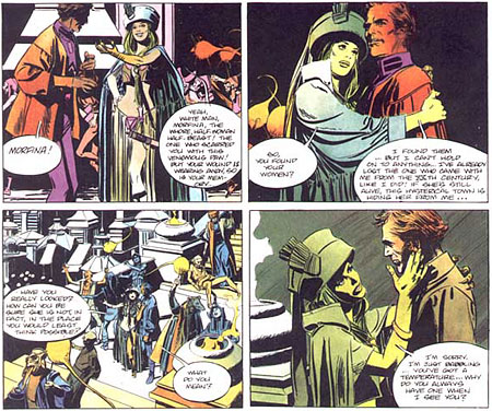 France has had an ongoing love affair with science fiction that goes back at least to the works of Jules Verne and – depending upon your viewpoint – possibly even as far back as Cyrano de Bergerac’s posthumously published fantasy stories. A perfect case in point is Les Naufragés du Temps (alternately translated as either Castaways in Time or, as here, Lost in Time) created in 1964 by Jean-Claude Forest and classical master-draughtsman Paul Gillon.