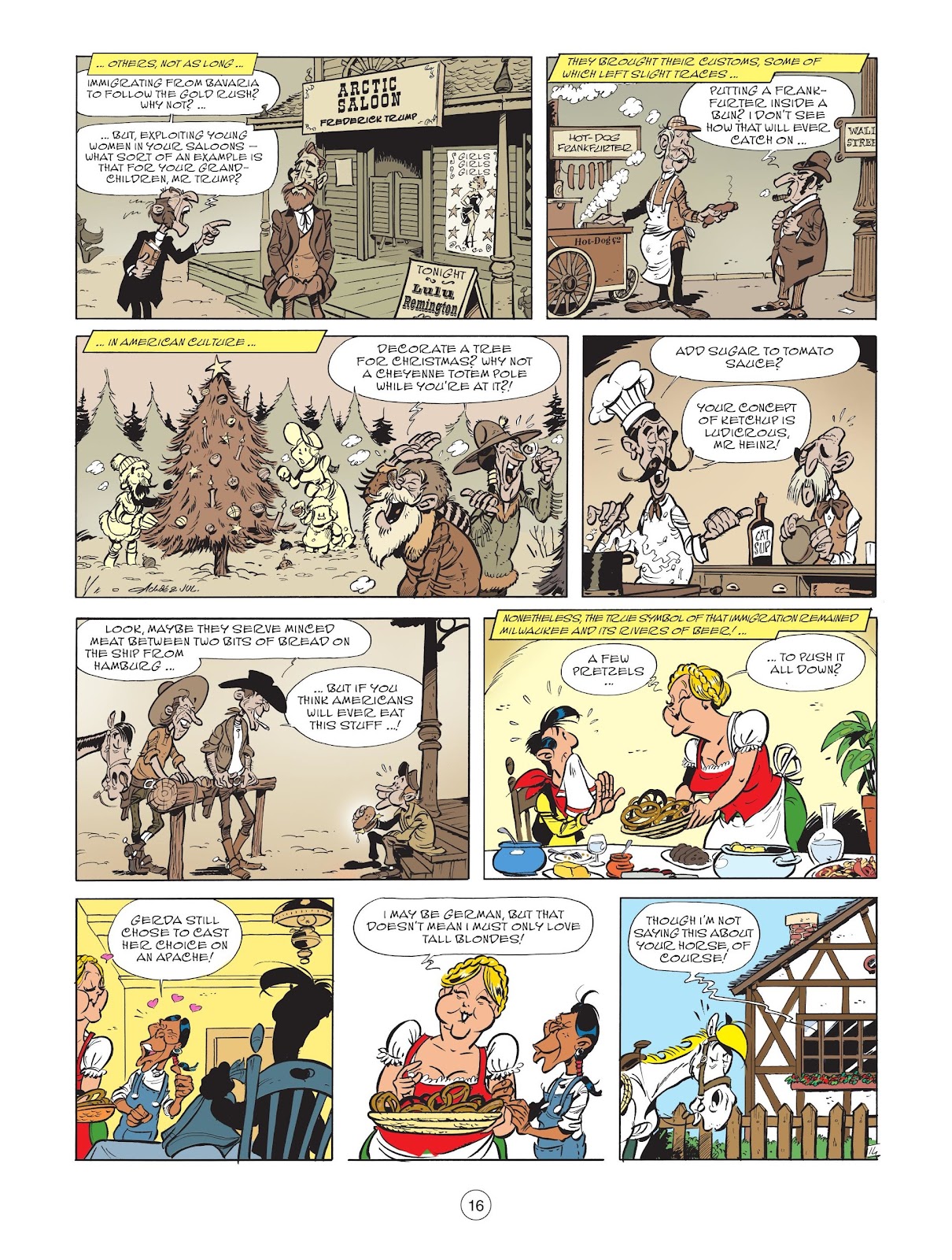 Contributions Germans have made to American culture are seen on the sample art, the balance permitting a few jokes at the expense of German culture. Jul’s farcical scenes about a town built on brewing are well conceived, such as the bath with hot, cold and beer taps, and he also supplies some great visual moments for Achdé. The Daltons are involved, they go missing, and we next see four barrels of ascending heights awaiting delivery, and they’re involved in a visually funny finale, although it’s somewhat tainted by an off colour joke at the expense of Luke’s Native American friend Two-Headed Eagle.
