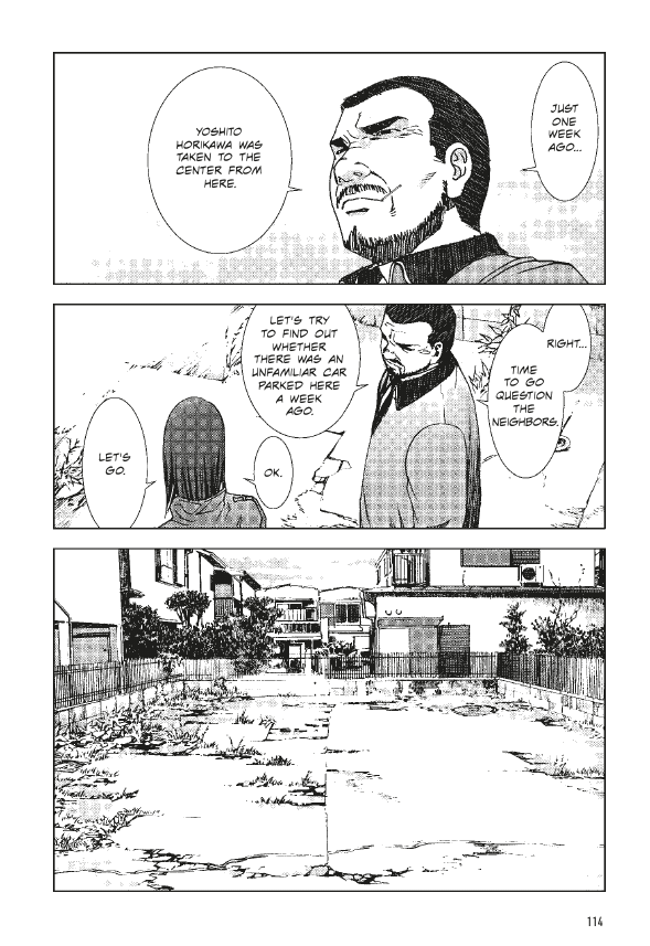 Manhole is the equivalent of a satisfying short run TV series, plotted over three chunky volumes as a police procedural investigation that gradually takes on possible supernatural overtones. Horror is present from the start as a naked man spews blood over a stranger in the fictional city of Sasahara, and the title is rapidly established as it’s discovered the man emerged from a manhole.