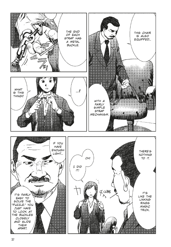 After the opening chapter, more so than in Manhole 1, Tsutsui keeps his focus on the police and uses Inoue as the reader’s viewpoint, sometimes seen recoiling in horror at what she witnesses. They, and by extension readers know what’s going on, but the wider public don’t. By the end of the volume, though, the perpetrator has returned to witness events, and ominously mentions the second part of his plan can proceed.