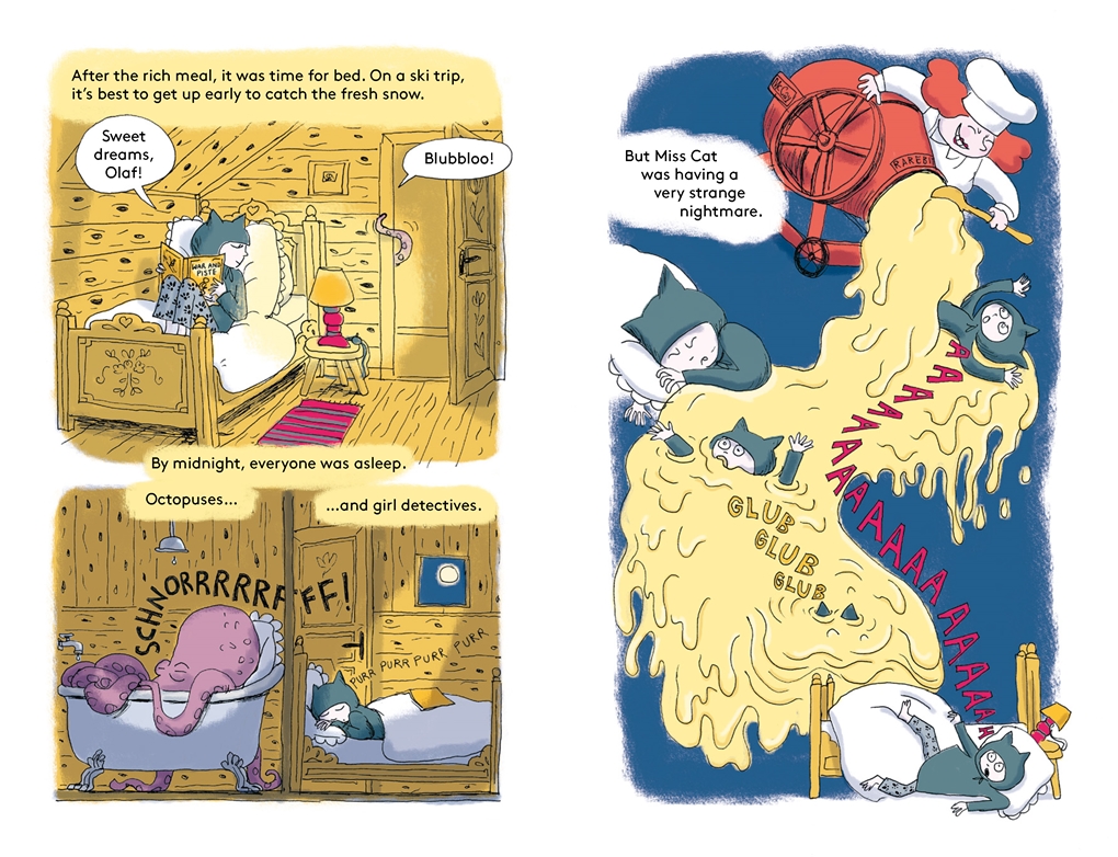Anyone who’s experienced the whimsy and charm of Jean-Luc Fromental and Joëlle Jolivet’s previous two books about detective Miss Cat will need no encouragement to pick up The Mystery of the Melting Snow. It checks every box that made The Gnome’s Nightmare so beguiling. If any convincing is needed, surely the idea of Miss Cat bringing her favourite octopus bartender on a skiing holiday will be allure enough. How will that work out? Well, let’s just say Olaf is a whiz with the cheese fondue.
