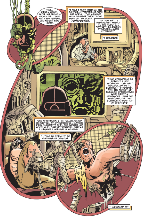 Throughout his writing on Spider-Man over several titles Jenkins seems to have adopted a pattern of featuring classic villains one by one and taking a look to see what makes them tick. Only the single chapter was required for Sandman in A Day in the Life, so it may surprise that two are required to assess Professor Mendel Stromm, creator of bespoke robots in 1960s stories, but long considered redundant. Jenkins, though, has found a way of making him relevant again in a story beginning with wild electrical surges. Stromm’s connection is sinister, unpredictable and brilliantly drawn by Buckingham as per the sample art, while providing Spider-Man with a disturbing ethical problem in what’s quite a prescient story given later real world technological developments.