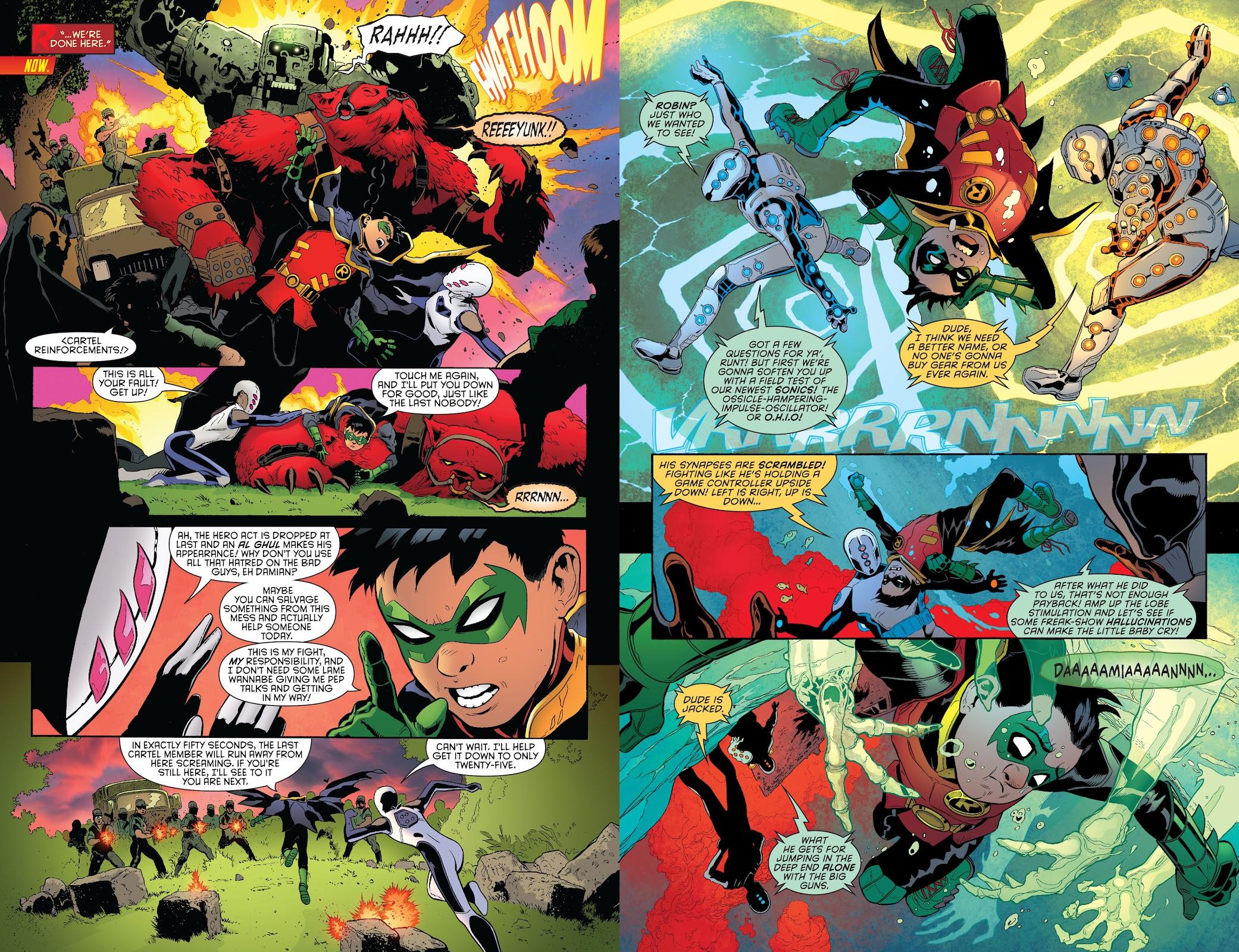 Fawkes is definitely the better writer, though. He continues the redemption theme, but with greater imagination, less linear storytelling and infusion of guest stars from the wider DC universe. Fawkes is more mystically inclined, but as that is an aspect of Robin’s heritage it fits his solo stories better than it would fit Batman. Robin’s actions eventually attract the attentions of the Al Ghul family, who’re not happy at his replacing stolen items.
