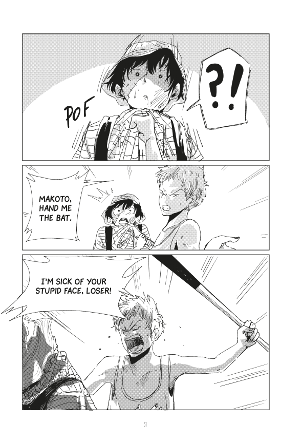 American graphic novels aimed at teenagers are generally relatively coy when it comes to bullying. There’ll be name calling, and perhaps some jostling, but the continuing vicious assaults endured by some children in reality rarely feature. “Score. I totally smashed his face in with my brutal shot” is just the starting point for Brandon Arias, who presents a sustained, targeted campaign against Kyonosuke in school and outside. The violence is graphic, with Arias using a simple manga style accentuating the chasm between innocents and their tormentors.