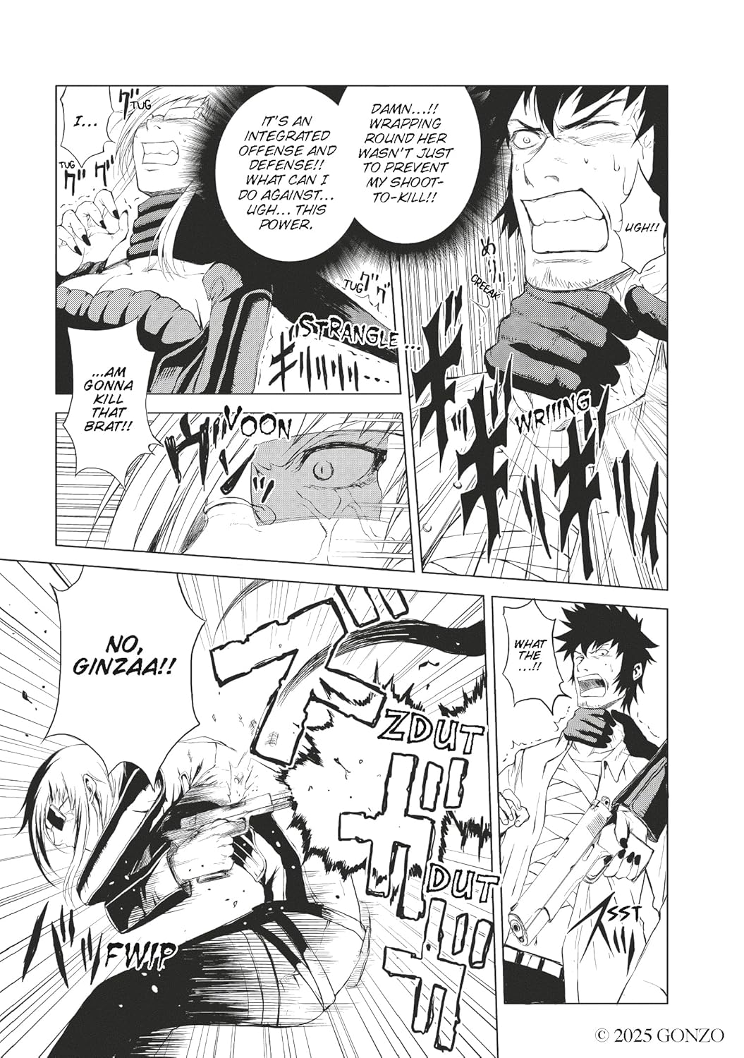 Tomozo’s adaptation of Gonzo’s 2005 action anime concludes here. Kissed by Kagura in a fetish club, photographer Tatsumi has since had the ability to kill people by pointing his camera at them and pressing the button. It wasn’t looking good for Tatsumi as Speed Grapher 2 ended. He’s injured, and a couple of people wanting to kill him have tracked him down and they also have powers.