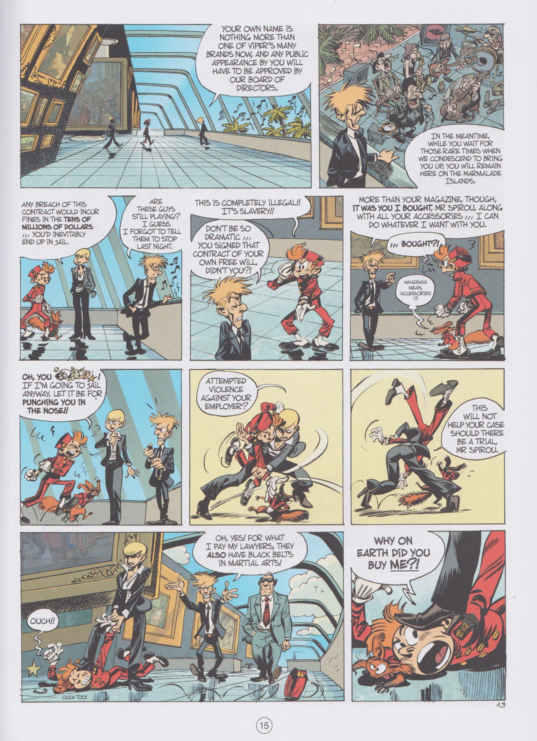The Viper is the name used by a rapacious financial investor, so rich he owns his own private island, and who maintains his position by aggressive legal action against anyone who disagrees with him. Like most middle-aged men, though, he has a longing for the comforts of childhood, and buying Spirou comic isn’t enough to scratch a particular itch, so he buys Spirou himself. This is via dubious means, but as stated, holding up people in court for years is a speciality.