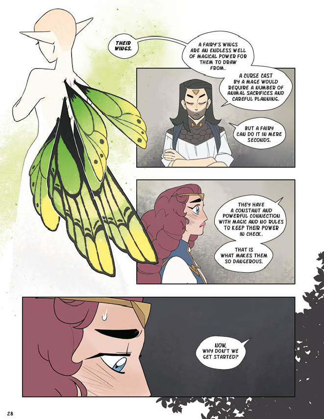 Suitor Armour is a clever medieval fantasy with magical elements centred on the castle of King Reimund, where Lucia is lady in waiting and friend to Princess Kirsi. What few know is that although she can pass for human she’s actually a fairy, a species against which the kingdom wages war. The further complication is Court Mage Norrix magically creating a suit of armour that turns out to have a personality, and now limited forms of speech. As seen in Volume One, he’s been named Modeus.