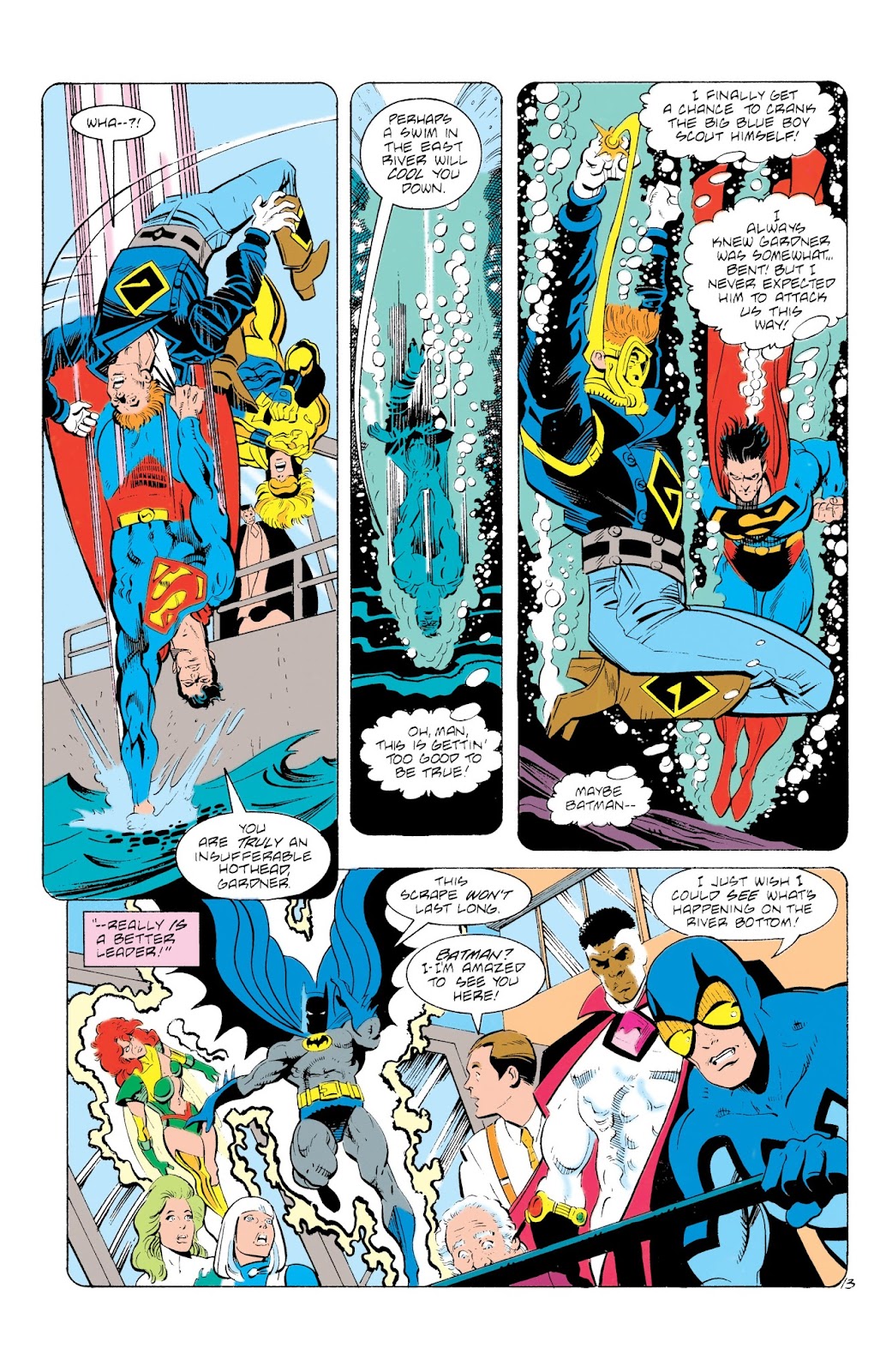 Superman might nominally be in charge, but he’s only one of what becomes a large ensemble cast with frequent guest stars, so his headlining status must be a marketing decision. He’s the character Jurgens delivers the best, noble and upstanding with fixed ideas about the right thing to do. Too many other cast members, though, are delivered in broad strokes with no great definition, one or two characteristics constructing a shorthand superhero. The nadir is Max Lord, here more Dick Dastardly, and the sequences in which Jurgens attempts a comedy Justice League fall far short of the best of what Keith Giffen and J.M. DeMatteis provided.