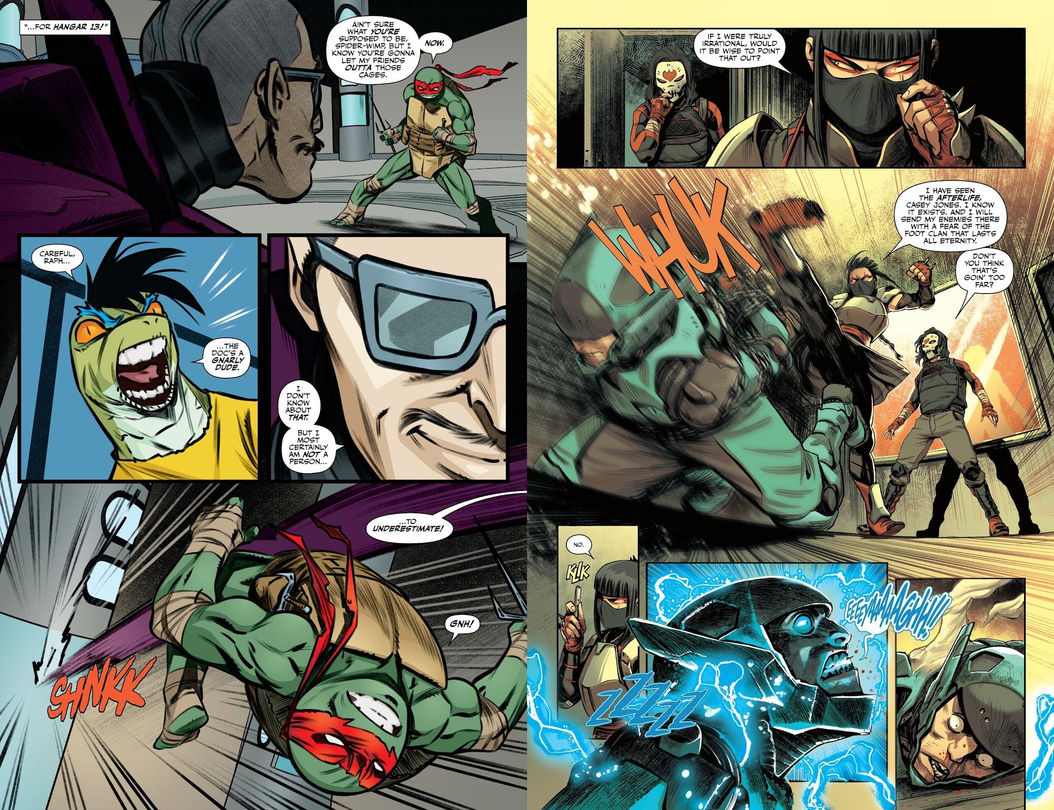 After New York and catching up with Raphael and Pepperoni courtesy of Paul Allor and José Jaro, a couple of longer stories take precedence. ‘Ambush in Area 51’ is by Waltz and Vincenzo Federici and concerns Raph’s trek into the unknown accompanied by loose cannon robot Metalhead. It turns out Area 51 isn’t just a dark site for UFO investigations, but has a sideline imprisoning mutants, which boils Raph’s blood. As with Federici’s art on other Turtles projects, the visual opportunities are squandered by concentration on close-up views and generic backgrounds. What begins as a relatively standard action adventure is propelled upward by the reintroduction of a dangerous enemy, but then just fades away for the plot points to be picked up elsewhere, which is disappointing.