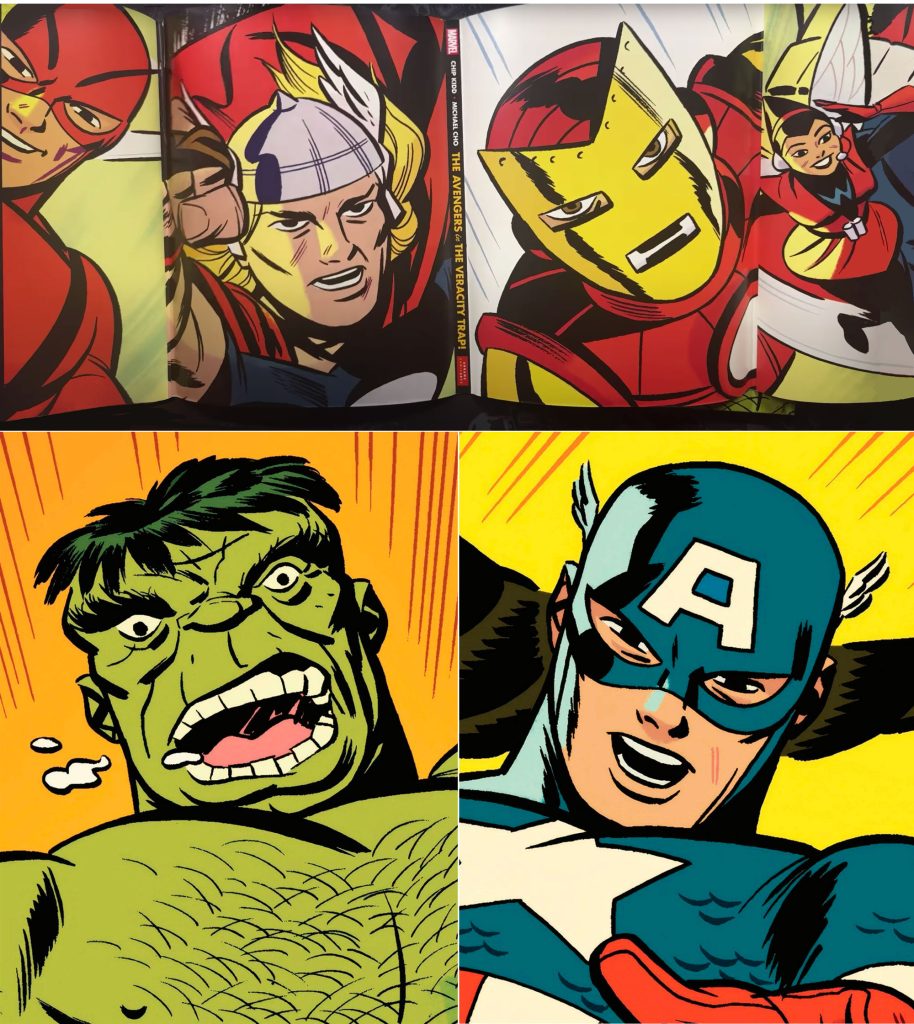 The Avengers in The Veracity Trap is a 64-page hardcover graphic novel set in the 1960s, featuring the earliest version of the Avengers. Written by Eisner Award-winning designer Chip Kidd and drawn by Michael Cho, it’s the second in Abrams ComicArts collaboration with MarvelArts. Like Fantastic Four: Full Circle by Alex Ross it’s full-on nostalgic celebration of the period when every issue was a creative experiment of some kind for Stan Lee and Jack Kirby.