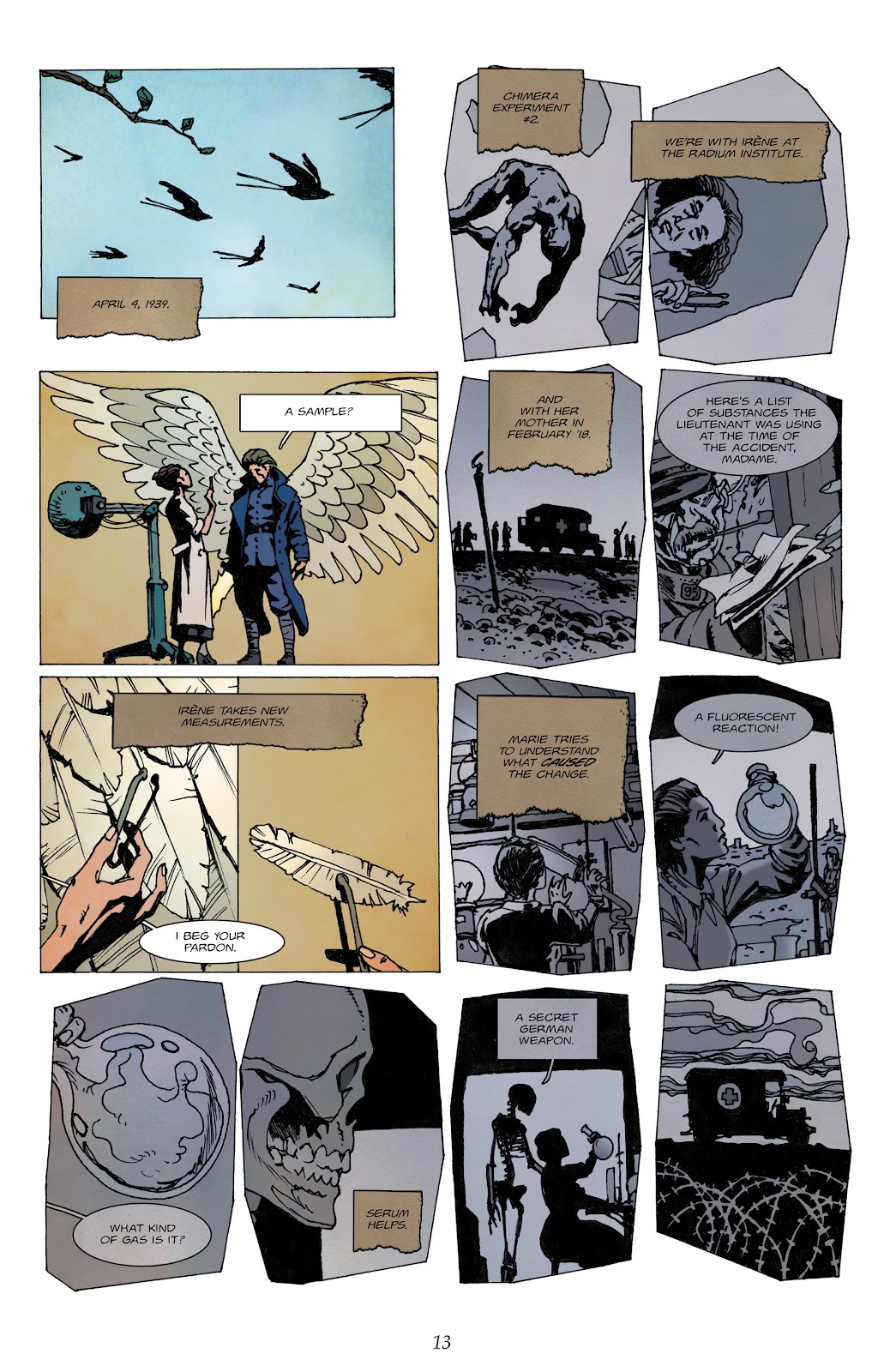 Assorted super powered individuals have been seen in the world of 1939, yet the Chimera Brigade themselves remained a mystery until the end of Book Two. Although held up as a paragon of virtue, it seems Marie Curie experimented on Jean Séverac as he lay in a coma, transforming him into a conduit to bring forth supernatural protectors. Serge Lehman and Fabrice Colin use the opening chapter to supply greater detail about what’s happening, although in keeping with the entire series this is supplied in an oblique manner suggesting rather than explaining. What is clear is Séverac experiencing his past alongside his present.