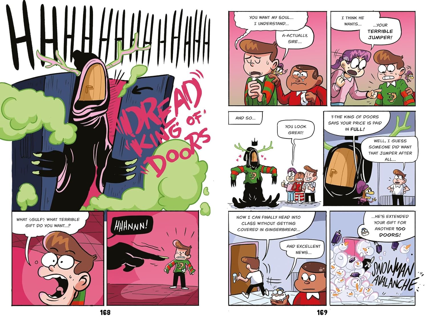 Once again Andreas Schuster keeps the art simple, creating a world where the small abstract shapes of the pixies fit around the preposterous situations Toby finds himself in. If there’s a design change it seems he’s exaggerating Toby’s quiff a little more than previously.
