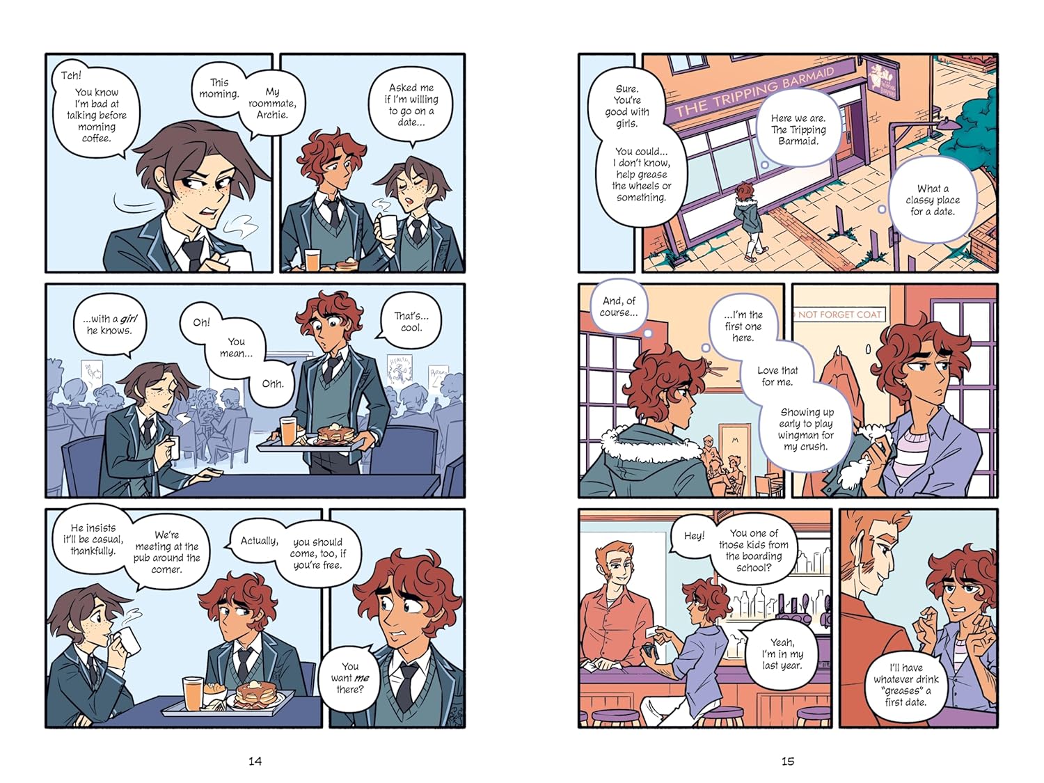 If you’re finding the gap between volumes of Heartstopper too long these days, this lighter-hearted romance between boys may fill that void. Suzana Harcum and Owena White’s comedy also began as a webcomic, and if you’d like to sample it’s archived online, but that’s presented in shades of grey, while the physical book is full colour.