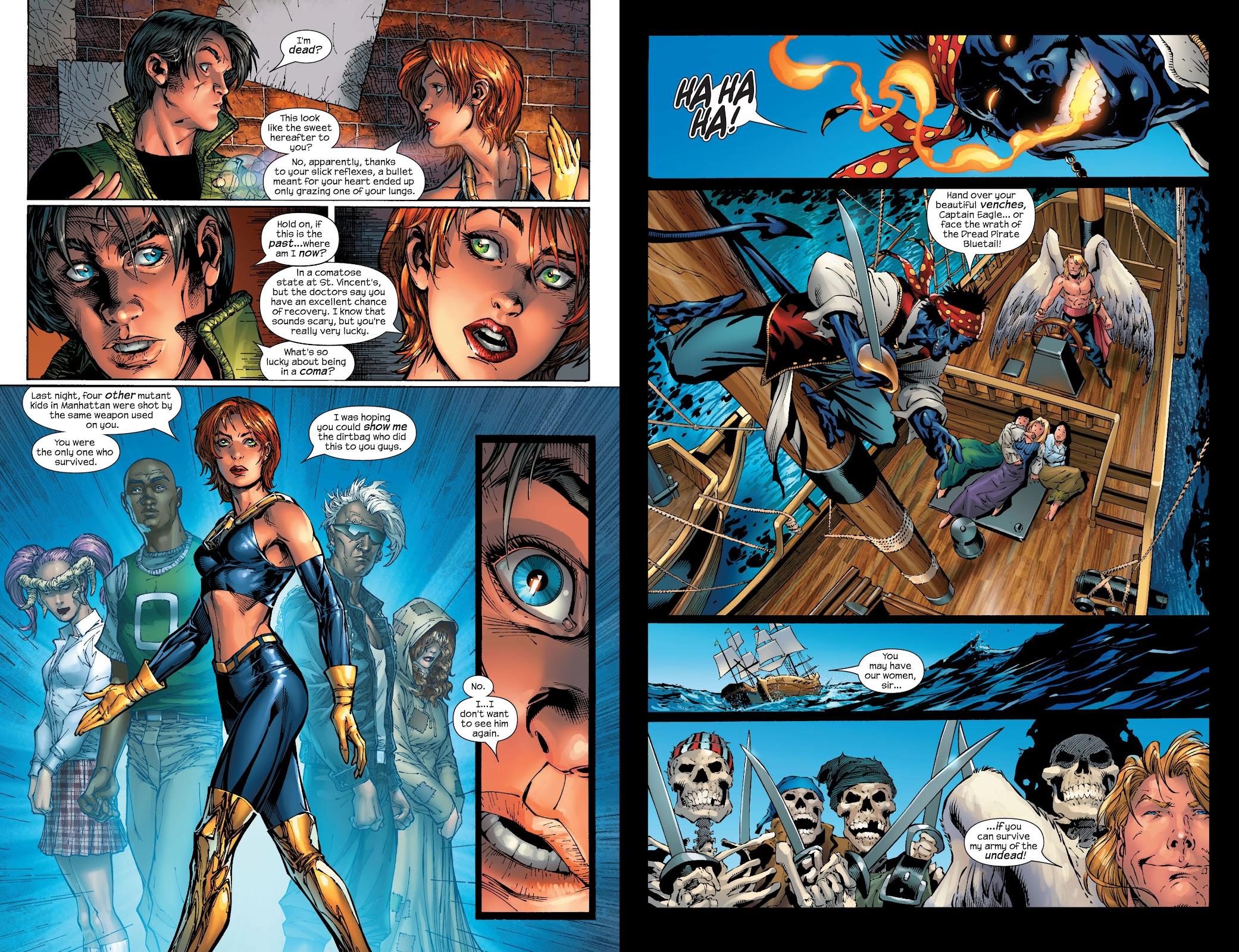 It’s a stop/start selection. The finer sequences and interpretations of the personalities in combination with artwork push the collection above average, but not without moments of considerable frustration. A persistent problem over three stories is Vaughan introducing the Ultimate versions of recurring X-Men enemies in unsatisfactory and easily defeated versions, although his simplified alternate Mojo is far less irritating. Balancing that is his deft understanding of the X-Men themselves. Dazzler is a relatively recent addition, but Vaughan’s entirely at home with her provocative personality, which is more interesting than her use as a reticent superhero, but Colossus, Rogue and a newly introduced Longshot also resonate, a good surprise awaiting about the latter. Downsides are an ill-advised attraction of Storm to Wolverine, and an unfortunate reliance on the word of Professor X being absolute and his not having the respect to explain decisions to the team.